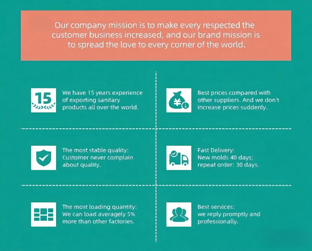 Our factory is specialized in designing, researching , developing, producing and marketing a series of hygiene products covering adult diaper,underpads and wet wipes.What’s more,our factory introduces superior production technology and equipments, we have our own advanced production lines at present. OEM and ODM service is provided, customers can customize their own brands. For products, our factory adapt strict quality control system to ensure the good quality of products. We will insist on providing the best quality products and service for each customer.