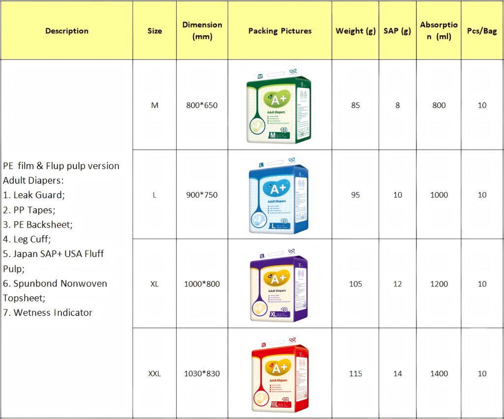 Factory Direct Sale Premium Quality Customized Packing Adult Diapers